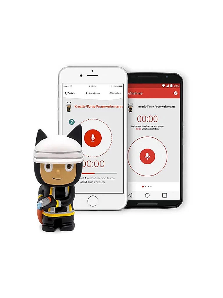 Hör-Spiel-Spaß marsch! Der Kreativ-Tonie Feuerwehrmann ist im Kinderzimmer bestimmt pausenlos im Einsatz. Zum Beispiel auf einer Spielzeug-Drehleiter in Richtung Toniebox. Welche Geschichten oder Lieder ihr ihm dabei auf den Weg gibt – das würde uns tatsächlich brennend interessieren …!