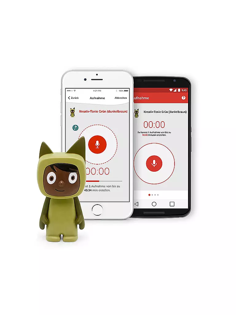 Mit der dazugehörigen, kostenlosen Smartphone-App können eigene Sprachaufnahmen aufgezeichnet und dem Kreativ-Tonie zugewiesen werden.
