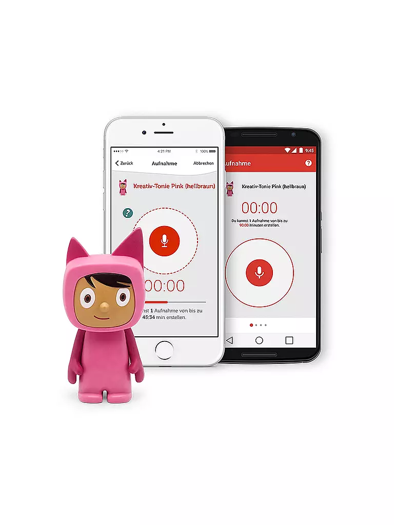 Mit der dazugehörigen, kostenlosen Smartphone-App können eigene Sprachaufnahmen aufgezeichnet und dem Kreativ-Tonie zugewiesen werden.