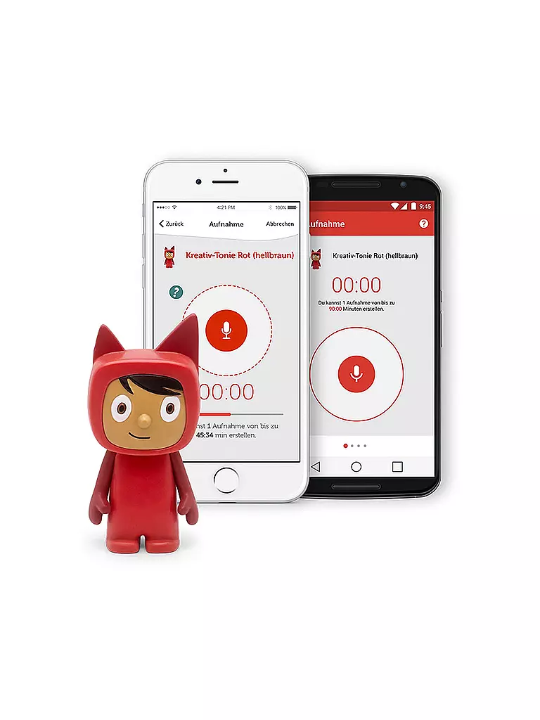 Mit der dazugehörigen, kostenlosen Smartphone-App können eigene Sprachaufnahmen aufgezeichnet und dem Kreativ-Tonie zugewiesen werden.