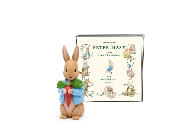 Peter Hase und seine Freunde – Ein Geschichten-Schatz Eine schöne Kollektion der besten Geschichten von Peter Hase und seinen Freunden – erzählt, gequakt, geschnattert von Johanna Schall. Tonies Hörfigur