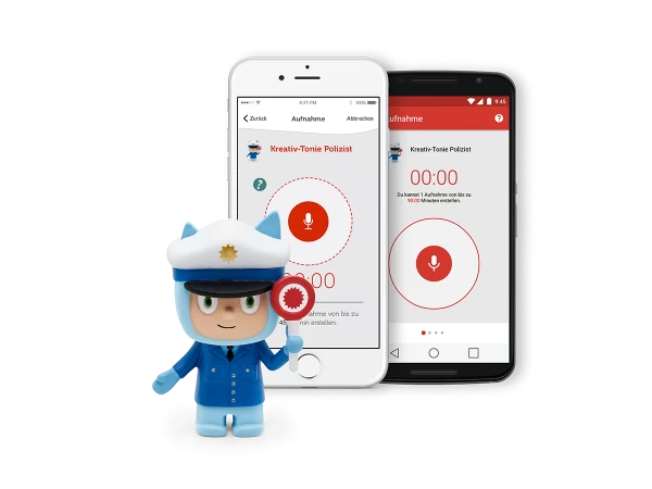 Eigene Musik oder Hörspiele mit der Toniebox hören? Mit dem Kreativ-Tonie wird dieser Wunsch wahr. Hier in Form des Polizisten. Voraussetzung ist ein kostenloses Toniecloud-Kundenkonto. Laden Sie eigene Audio-Inhalte einfach in die Cloud. Zum Bespielen des Kreativ-Tonies stellen Sie diesen wie gewohnt auf die Toniebox. Mit der Tonie-App für das Smartphone können Sie dann einfach die Inhalte auswählen, die mit dem Tonie verbunden werden sollen.